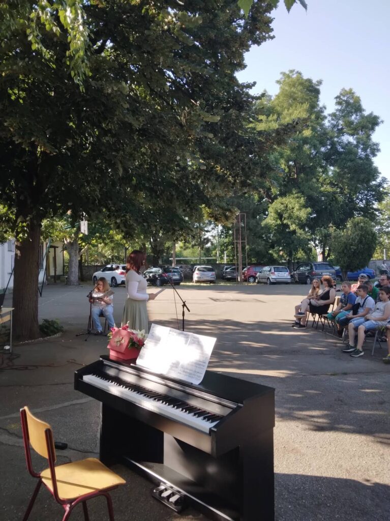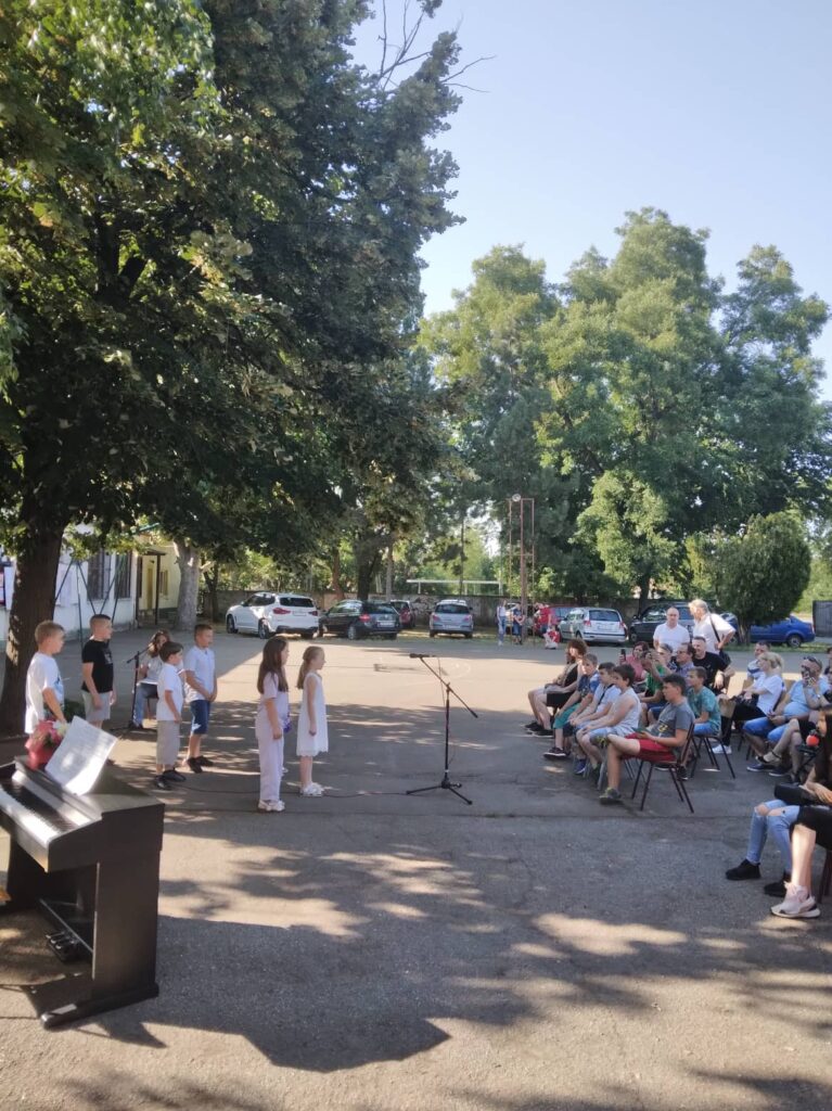 Последњи школски дан пред дуго очекивани распуст, искористили смо да обележимо Дан школе. У дворишту, испод липе, госте смо дочекали лепом изложбом ликовних радова и припремили им приредбу. Присутнима се обратила и директорка Анастазија Тот Римаи. Ђаци, наставници и родитељи могли су да уживају у плесу најмлађих, рецитовању на мађарском, српском, енглеском и немачком. Наступали су и наши вредни музичари. Чули смо звуке виолине, клавира и хармонике, а наглас се орила и песма. Похваљени су ученици који су у овој школској години постигли изузетне резултате на разним такмичењима. На крају смо, у заслужену пензију, испратили четворо наставника. Атмосфера у дворишту наше школе била је скромно свечана, како и приличи Дану школе.
