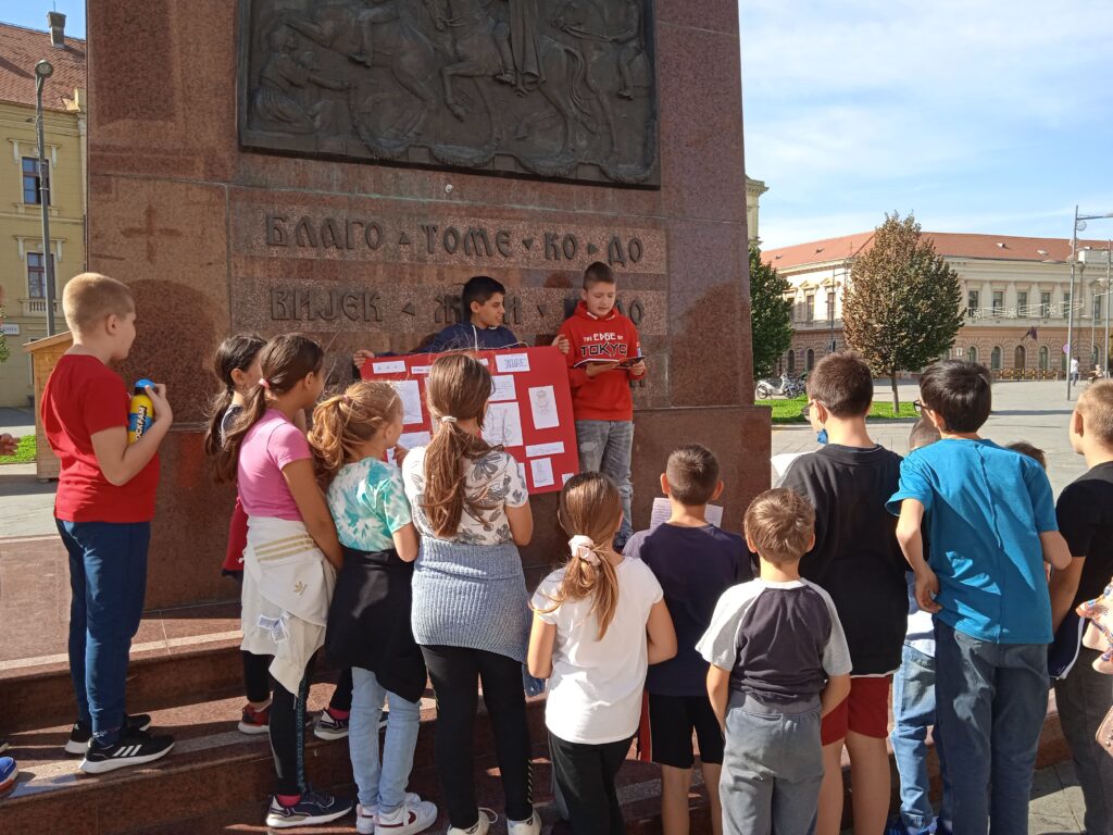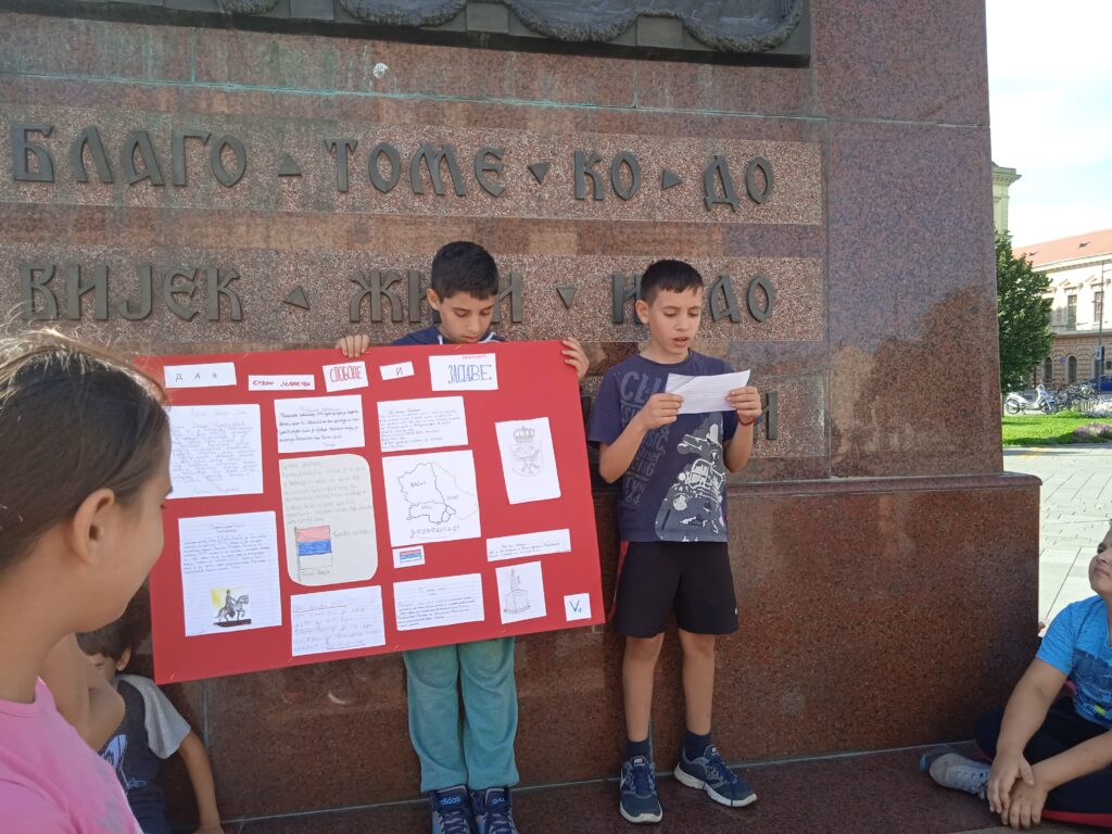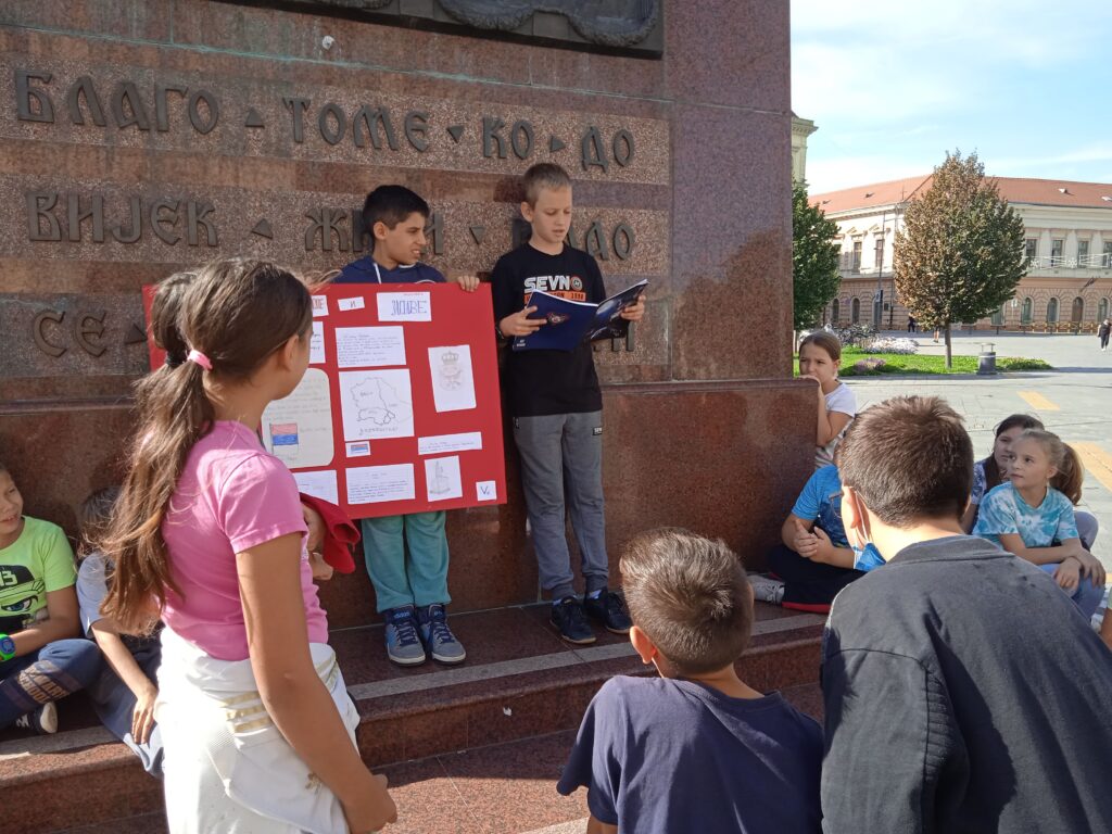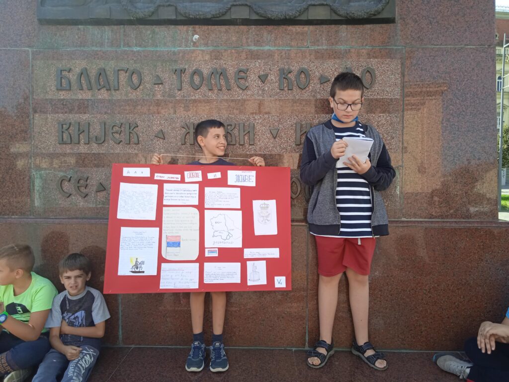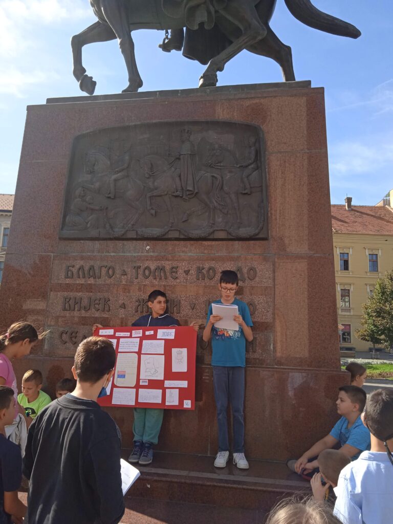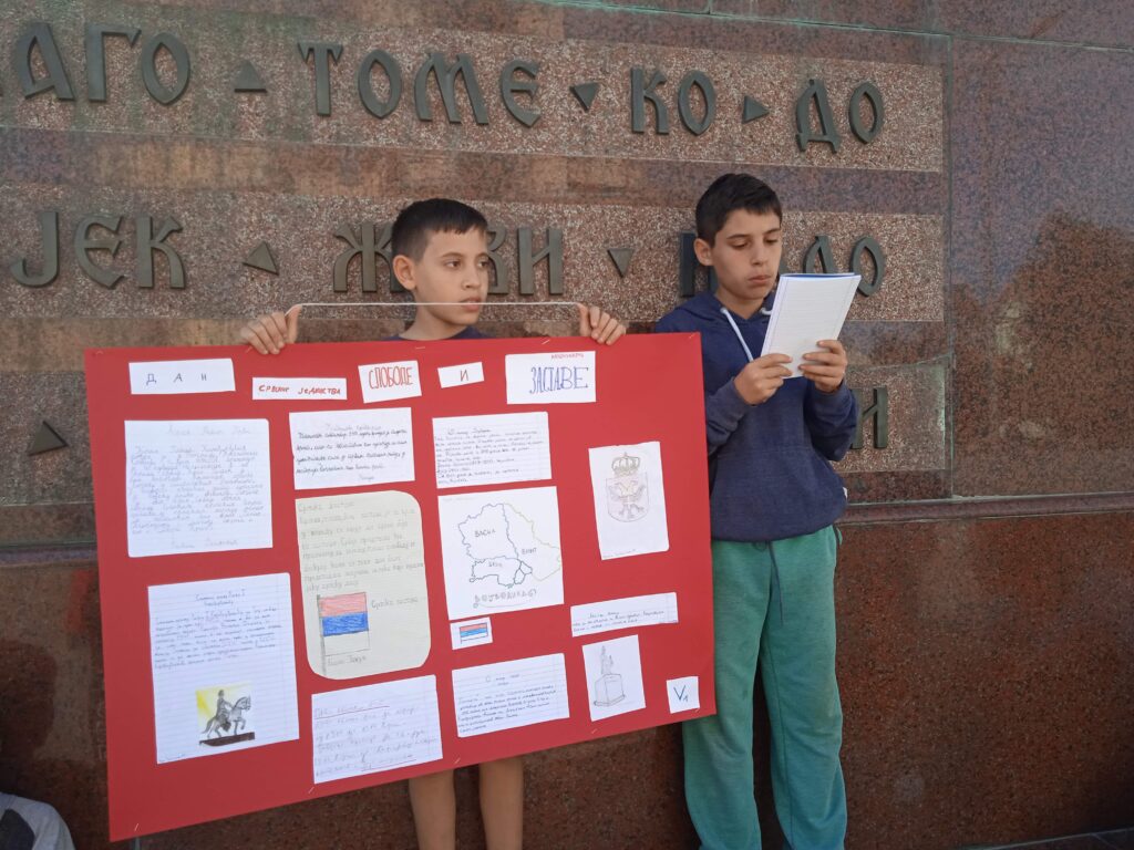 Данас су, испод споменика краљу Петру у центру нашег града, одржали један отворени час својим млађим другарима из првог и четвртог разреда и на тај начин су презентовали свој рад и обележили Дан српског јединства, слободе и националне заставе.