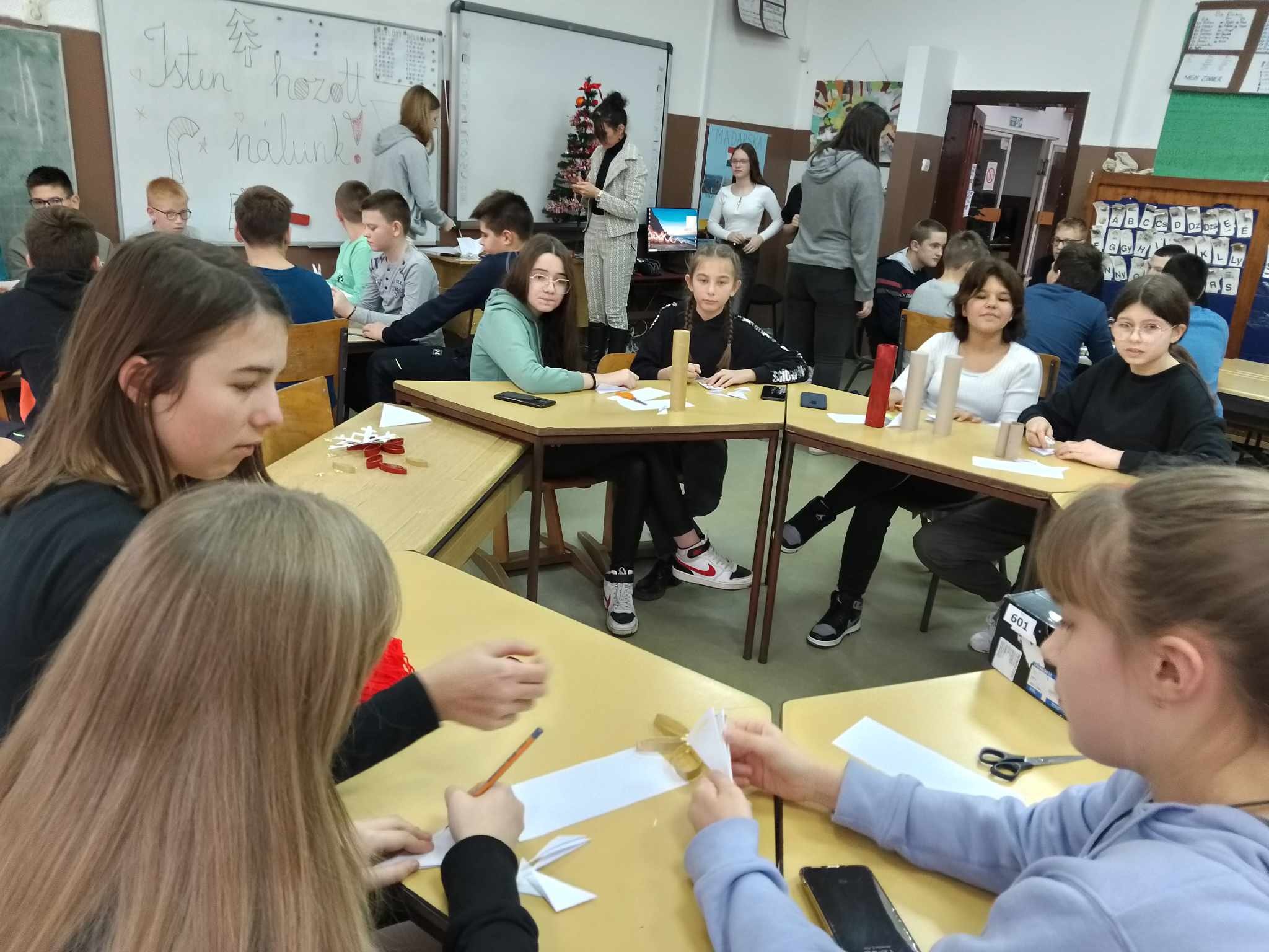 Iskolánk december 8-án, pénteken az óbecsei Samu Mihály Általános Iskola tanulóit és pedagógusait látta vendégül. A két intézmény igazgatónői, Tóth-Rimai Anasztázia és Janković Annabella aláírták a testvériskolai megállapodást. A diákok barátkoztak, sportoltak, karácsonyi díszeket készítettek, amelyekkel a felállított fenyőt ékesítették, közben palacsinta is sült. Szabó Emil és Ádám, szentmihályi citerások zenével kedveskedtek a vendégeknek. A látogatás viszonzására tavaszra kerül sor.